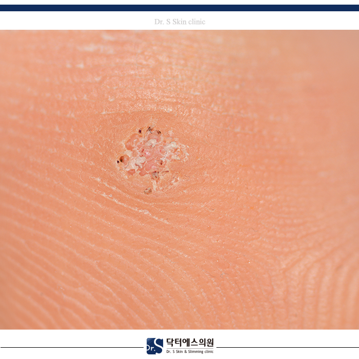 전염성이 없으며 각질을 깎아 내어도 출혈이 없습니다.
